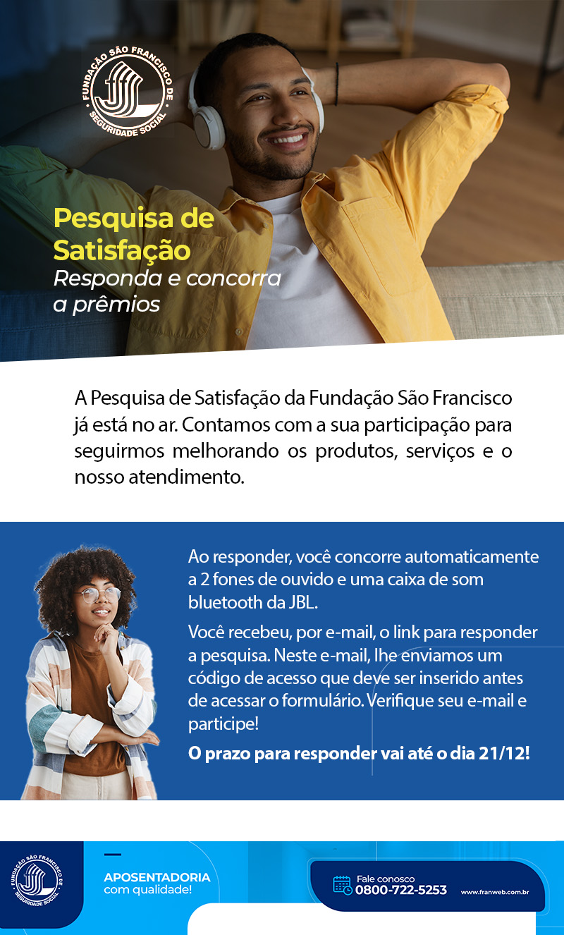 Está terminando o prazo para participar da campanha Seu Futuro Protegido, da Fundação São Francisco. Ainda dá tempo de revisar seu percentual de contribuição e reforçar o compromisso com a sua segurança financeira
